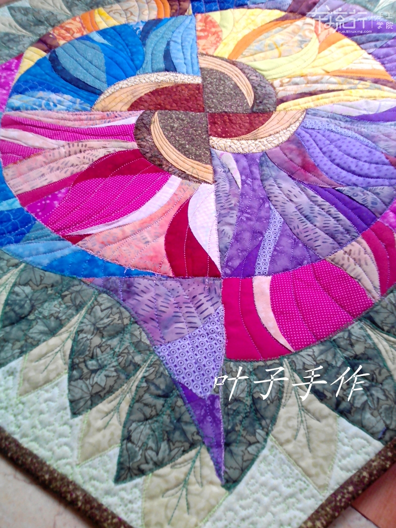 压线做的不完美,每种色系是用同一个色号线压的,感觉配色布有点花俏,就不加别的色号了,机子容易跳线,布料也是局限,本来周围叶子再加一圈会更好些,感谢老师的视频!